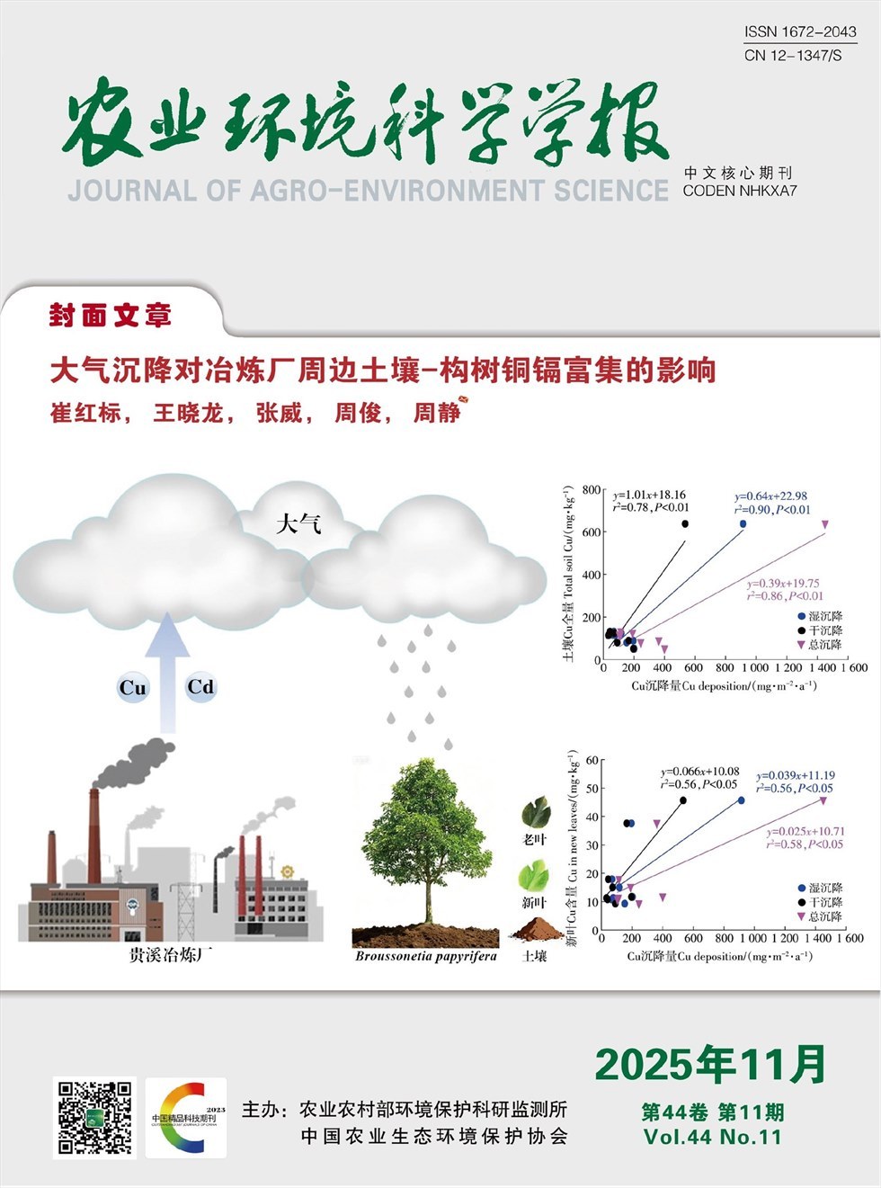 《农业环境科学学报》:是农业生态环境领域的全国性学术类科技期刊,由农业农村部环境保护科研监测所和中国农业生态环境保护协会联合主办。主要刊登农业生态环境领域具有创新性的研究成果,包括新理论、新技术和新方法。文章类型包括专论与综述、研究报告、研究快报、学术争鸣等。