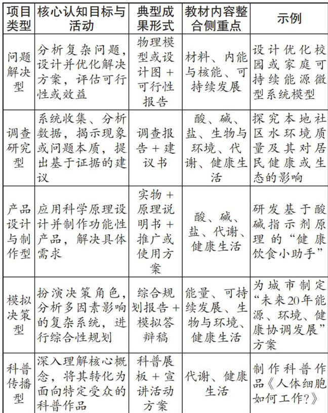 【摘要】基于浙教版科学九年级上册教材与项目式学习的契合点,系统设计问题解决型、调查研究型等五类项目,并以“未来一周营养健康低碳午餐计划”项目为例详述混合式实施流程,同时提出课时弹性规划与素养多维评估的细节与建议,旨在为教师有效运用项目式学习整合教材内容、促进学生实践提供参考。