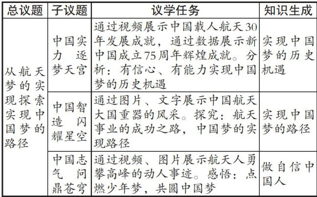 【摘要】在新时代爱国主义教育背景下,初中道德与法治课程作为培育青少年爱国情感的主阵地,其教学实效性如何进一步提升成为重要课题。文章以统编版道德与法治九年级上册“共圆中国梦”的教学为例,探索时政资源与爱国情感培育的融合路径:在目标导向上,精选时政资源;在教学设计时,巧用时政资源;在课后延伸中,拓展时政资源。实践表明,该教学模式通过时政资源的战略性开发与创造性运用,有效实现了学生政治认同从认知理解到情感认同再到行为外显的阶梯式发展,为思政课落实立德树人根本任务提供了具有可操作性的实践参考。
